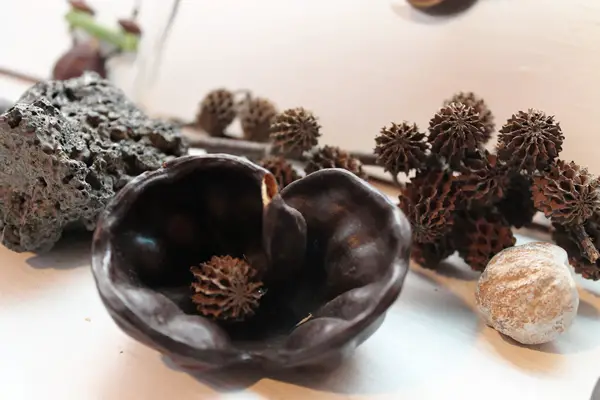Son amour pour son art la pousse aussi à rechercher la connaissance des graines et de leur histoire auprès des anciens de l’île. C’est ainsi qu’elle a appris que la plupart des graines qu’elle utilise dans ses créations servaient à quelque chose dans l’ancien temps. Par exemple, la graine de bancoul servait à éclairer les maisons, le badamier médicinal servait à purger et la graine de dauphin servait à l’école lors de travaux pratiques. Aujourd’hui, Hermana travaille avec plus de 40 graines différentes et s’est lancée le défi d’en trouver une nouvelle chaque mois, défi remporté haut la main jusqu’à présent.